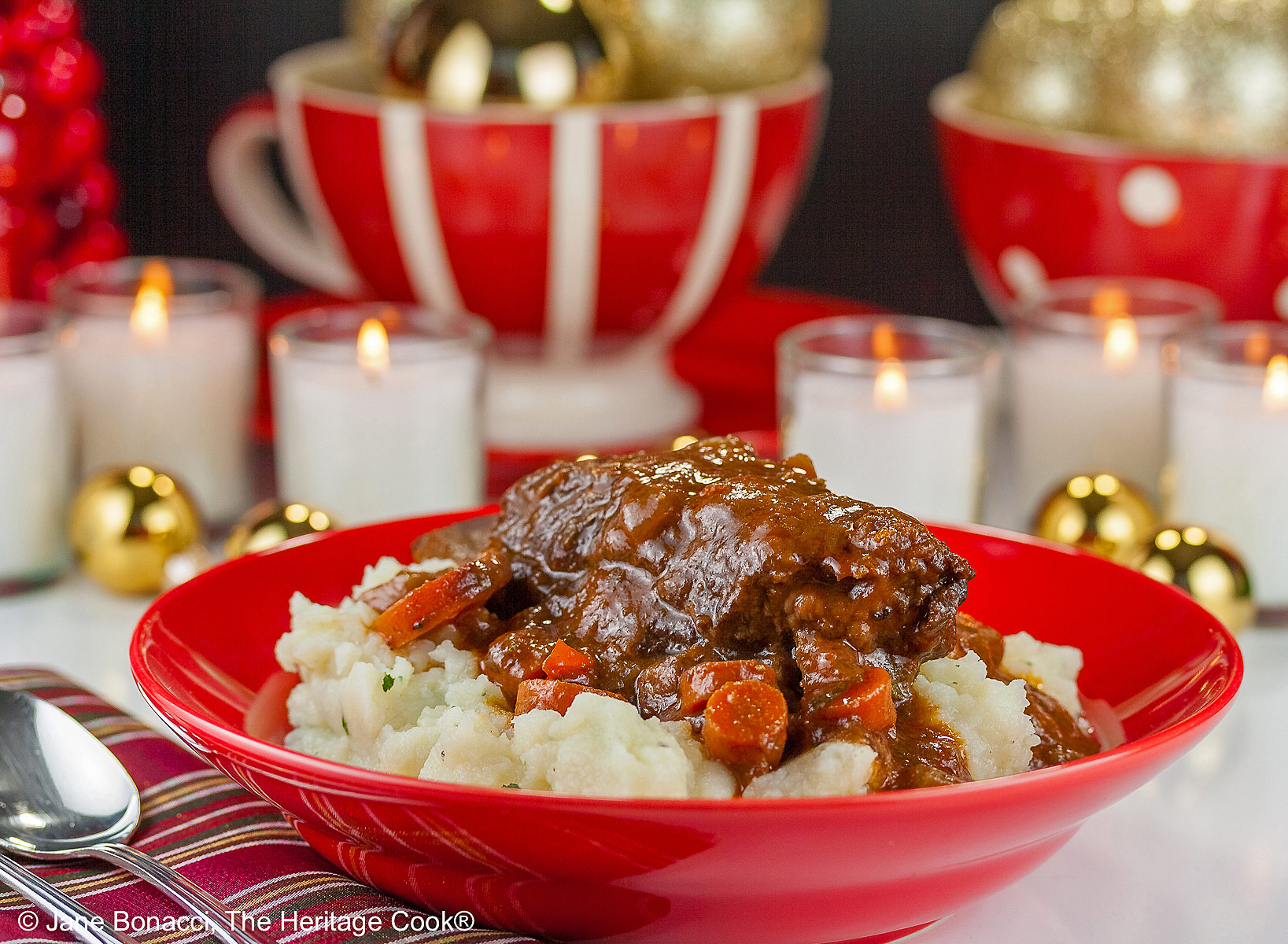 Today’s Red Wine Braised Short Ribs with Garlic Mashed Potatoes are the perfect fall and winter meal. Warm and filling, this is comfort food at its best. And like many soups and stews, this is actually better on the second day, making it a wonderful make-ahead party food.